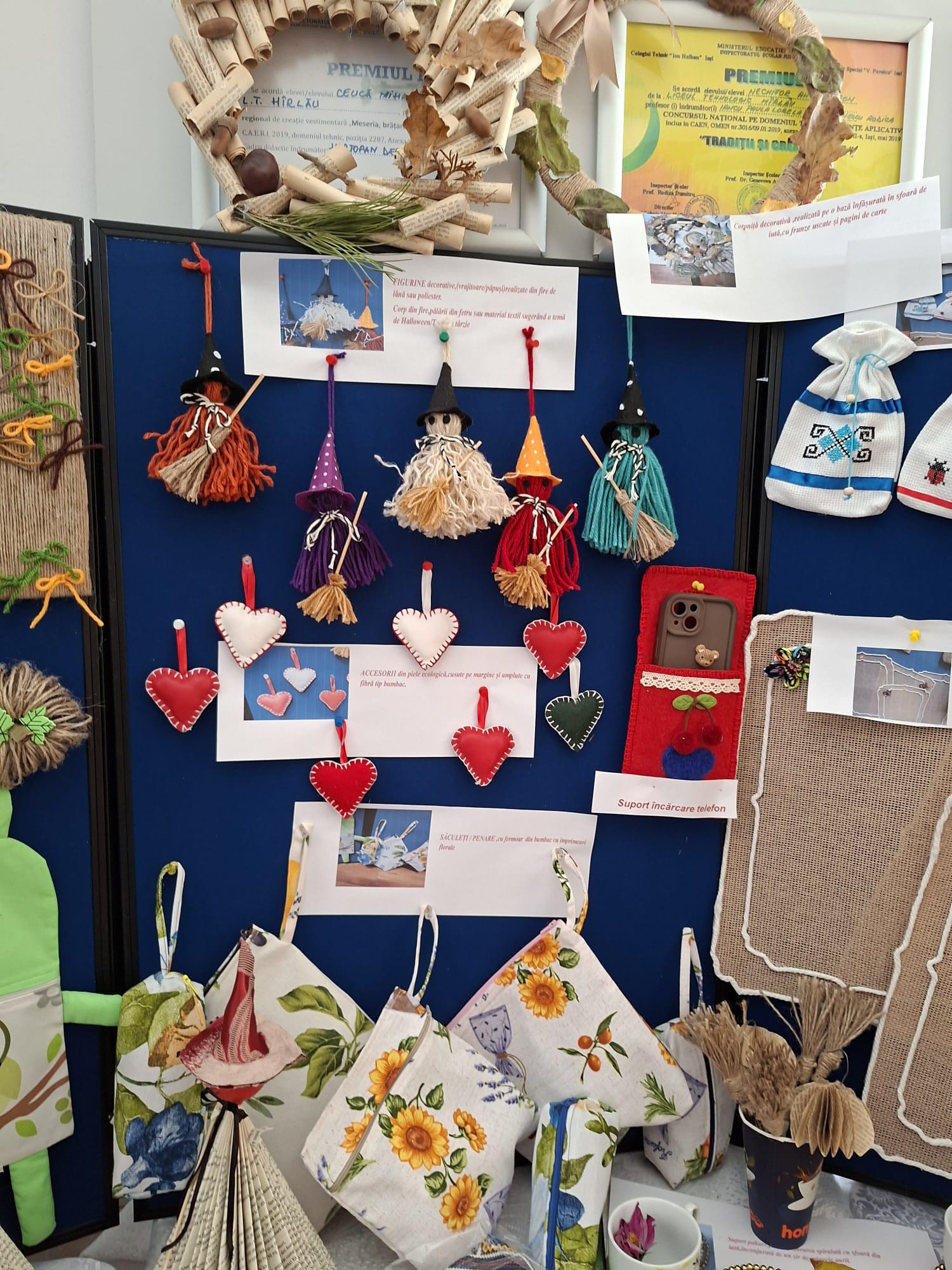 TOAMNA TEXTILELOR” la LTH – expoziție cu lucrări ale elevilor de la domeniul Industrie Textilă și Pielărie, clasele a X-a E și a XI-a E. S-au folosit textile, materiale reciclate și elemente naturale, specifice sezonului.