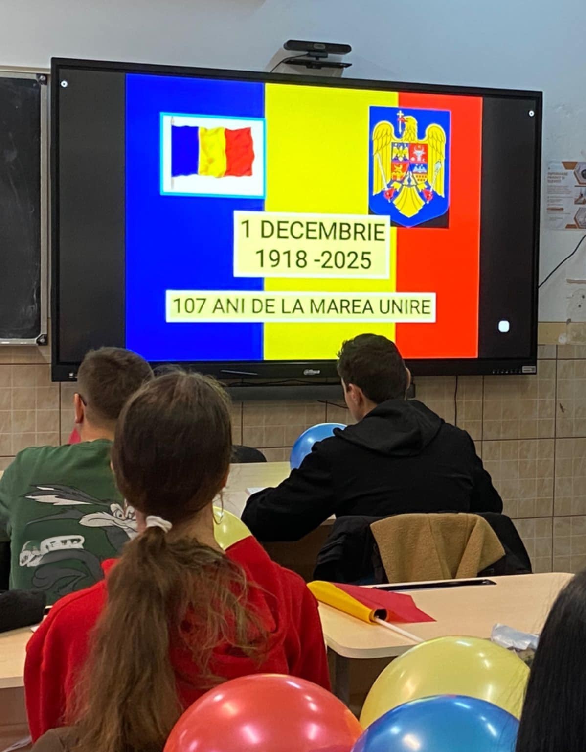 Elevii și cadrele didactice de la liceul nostru au marcat acest eveniment important pentru toți românii prin diverse activități: lecție de istorie, vizionarea de secvențe din filme documentare, flash-mob tricolor, cântece patriotice.