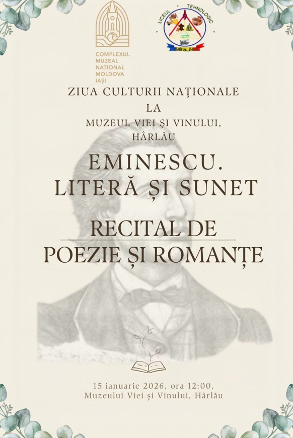 15 Ianuarie 2026 - Ziua Culturii Naționale – Ziua de naștere a Luceafărului poeziei românești – Mihai Eminescu, a fost celebrată de elevii liceului nostru prin activități diverse desfășurate în liceu, dar și la Muzeul Viei și Vinului Hârlău – Complexul Muzeal Național „Moldova”.